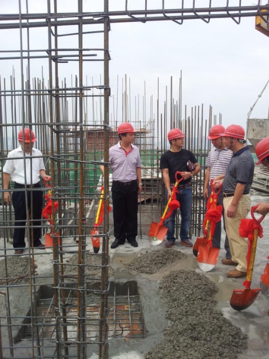 ? ? ? ? ? ? ? ? ? ? ? ? ? ? ? ? ? ? ? 陳總與各參建單位負(fù)責(zé)人參加純棉時代封頂儀式